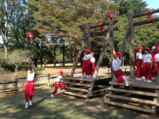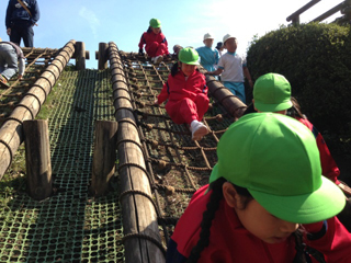 わんぱく山を慎重に渡っています。