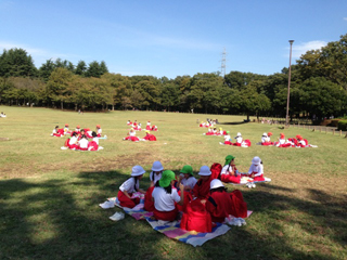 芝生の上でお弁当を食べました。