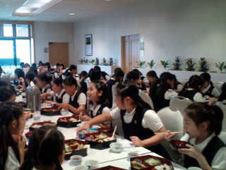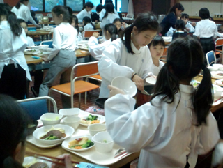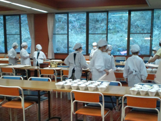 食事係が協力して夕食の配膳をしました。 |