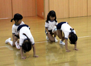 キンダーファミリーパーティーにむけ、体操の先生の合図に合わせて動きの確認を行いました。 |