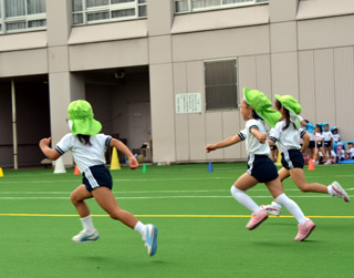 入退場の練習やダンスの立ち位置など、キンダーファミリーパーティーにむけた練習が目白キャンパスのグラウンドで行われました。 |