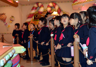かわいらしいキャンディーやアイスクリームなどの工場見学、ボートに乗ったり、ミュージカルやパレードをみて一緒に踊ったりと楽しい一日でした。 |