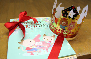 11名の3月生まれのお友だちと4月1日生まれのお友だちをお祝いした後、「花咲か爺さん」のビデオを観ました。 |