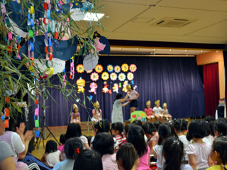 七夕の雰囲気に包まれたゆうぎ室でお祝い。