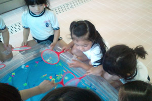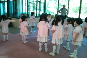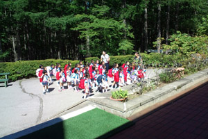 | ハイキングから帰ったあとの夕涼み会の様子です。今日も楽しい行事がいっぱいの一日でした。 |
