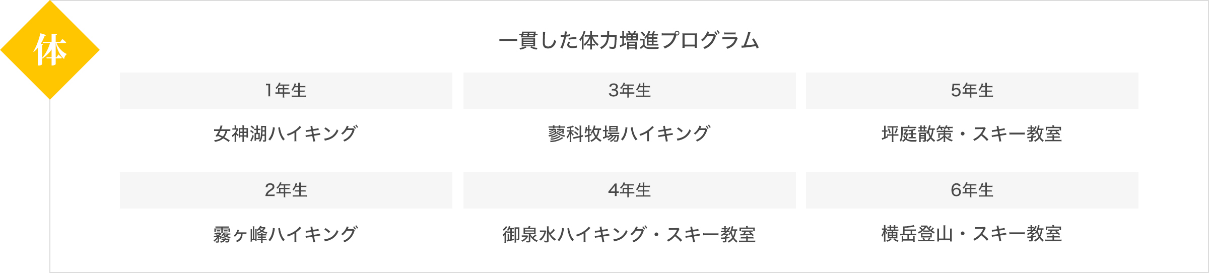 蓼科山荘でクラスの枠を超えた集団生活を体験することにより、友達との親睦を深め、思いやりの心を育てます。