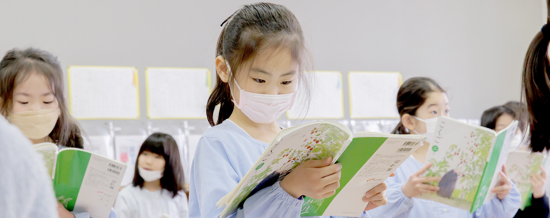毎日、朝の10分間読書を行うことで、1年生から読書習慣を身につけ、思考力を伸ばすことにつなげていきます。