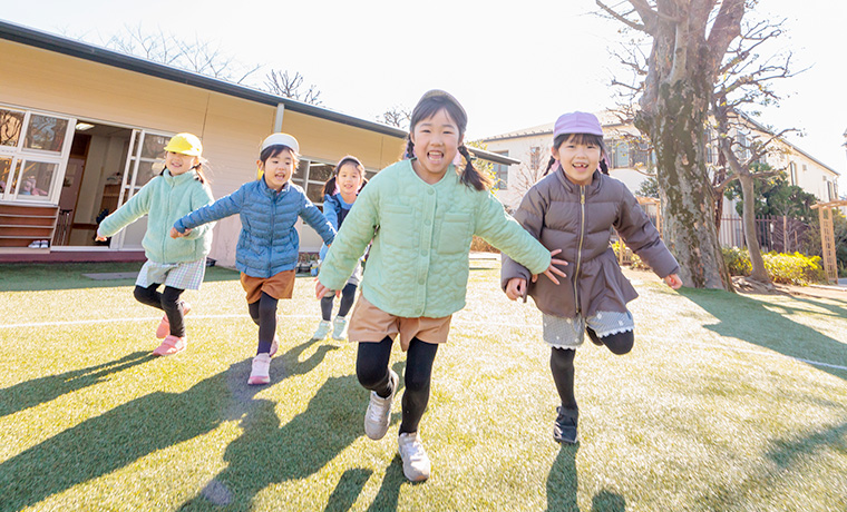 遊びのなかで集団生活でのルールを覚え、コミュニケーションを交わしながら、バランスのとれた身体を育んでいます。