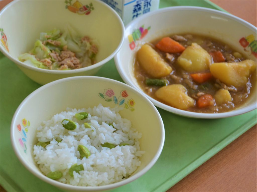「枝豆」は、「畑の肉」といわれる「大豆」と同じく、良質なタンパク質、脂質に富んでおり、豆と野菜の栄養的利点を持った緑黄色野菜に分類されます。会食では、夏野菜の代表格である「枝豆」を使ったごはんが提供されました。