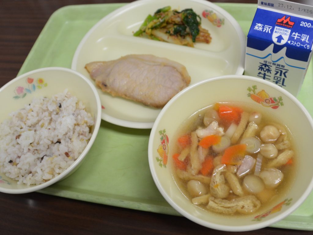 会食 TOP 会食 11月24日は「和食」の日です 2023.11.28 11月24日は「和食」の日です 和食の特徴といえば、栄養バランスのとれた多くの食材と、その素材を活かした調理方法です。また、旬の食材から季節を感じる料理であるとともに、特別な日にいただく行事食が挙げられます。川村学園では、出汁のうま味のきいた吉野汁と身体によいとされている十六穀ごはんが提供されました。 いい和食の日献立 十六穀ごはん 豚肉の西京焼き 白菜と小松菜のおかか和え 吉野汁 牛乳(幼・小)、麦茶(中高) 前の記事へ 次の記事へ 一覧に戻る 年代別 すべて 2025 2024 2023 2022 2021 2020 2019 NEWS入試情報一覧大学・大学院