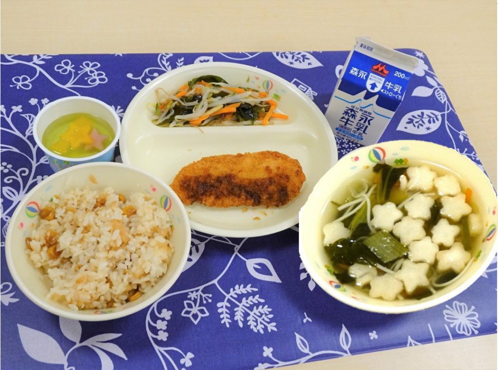 会食 TOP 会食 七夕メニュー 2025.07.09 七夕メニュー 令和7年7月7日(月) 今日は、七夕会食です。七夕の日に天の川に見立てたそうめんを食べると1年間無病息災で過ごせるというという言い伝えがあり、おすましにもそうめんが入っていました。デザートは、流れ星のようなゼリーでした。皆さんの願いごとが叶いますように。 ☆七夕献立☆彡焼きとうもろこしご飯白身魚のフライ(中濃ソース)海藻入りサラダ(青じそドレッシング)七夕おすまし天の川ゼリー牛乳 前の記事へ 次の記事へ 一覧に戻る 年代別 すべて 2025 2024 2023 2022 2021 2020 2019 NEWS入試情報一覧大学・大学院
