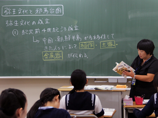 前回までに学んだ「縄文時代」のことを確認しながら、「弥生時代」の特色を教科書や資料集を見ながら学習を進めていきました。