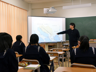 川崎市平和館の専門調査員をされている方を講座にお招きして、コソボを題材に「平和」について、写真や資料、ご自身が実際に現地で撮影された動画を使った講話をいただきました。