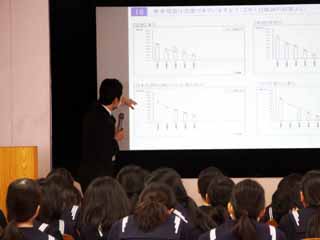 ㈱ベネッセコーポレーションの方から現役合格に向けた学習法をはじめ、「赤本」や「進研模試帳票」の効果的な使い方などの話をうかがいました。希望進路の実現にむけては、行動あるのみです。