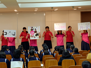 生徒会が中心となり、学術部、芸術部、運動部の各部が、新入生に向けて分かりやすく活動を紹介しました。