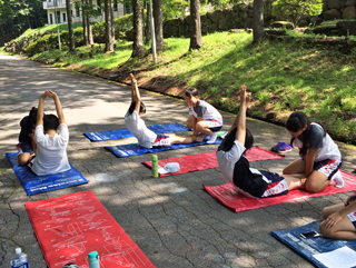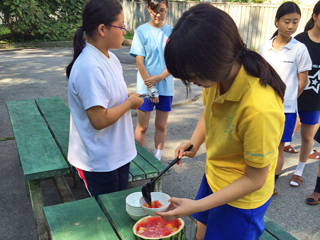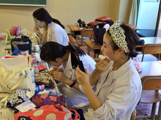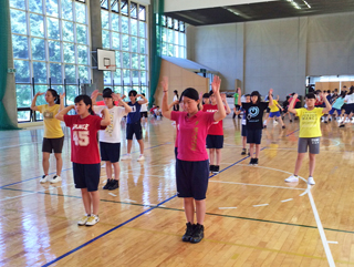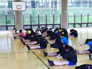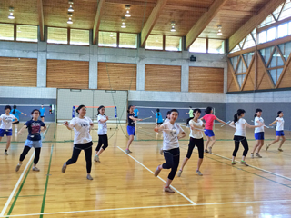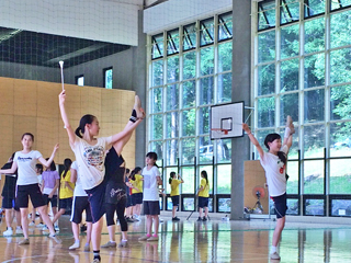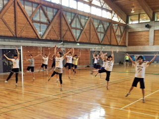 高校生も同じく、鶴友祭とシニアフェスティバルに向けて練習しています。「ジングルベル」に合わせた演技です。どちらも合宿で初めて振りを教わりました。