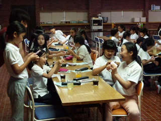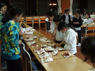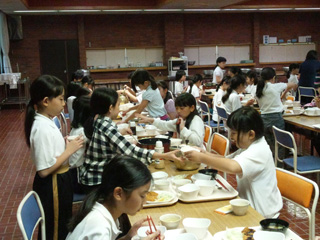 山荘に戻り、入浴後は夕食です。おかわりするくらい、みんなとても元気です。