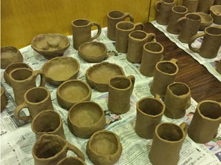 陶仙房の方にご指導をいただきながら、湯のみやマグカップ、茶碗などを作っています。