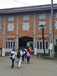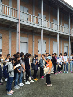 富岡製糸場に到着しました。ガイドさんのお話を伺いながら、場内を見学します。