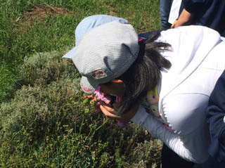 ハーブの歴史や日本にあるハーブのお話を伺い、防虫剤として使われるサントリナなどの匂いを嗅いだり、