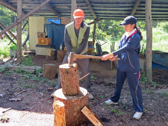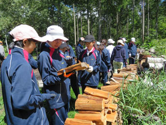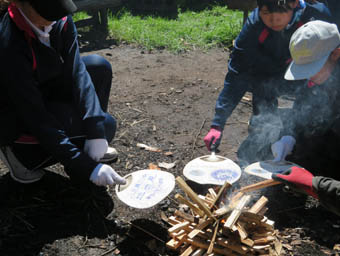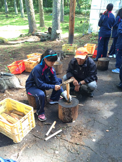 まず、火起こしに必要な薪や枝を選びました。なかなか火がつきませんでした。