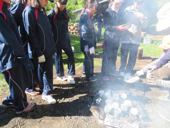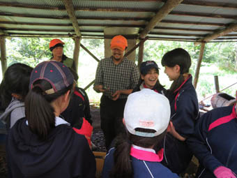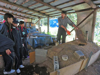 先生から炭焼きの装置の仕組みや、黒炭と白炭の違いについて教えていただきました。