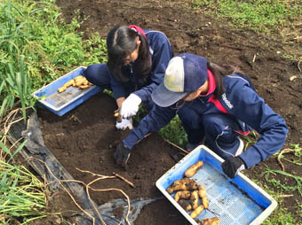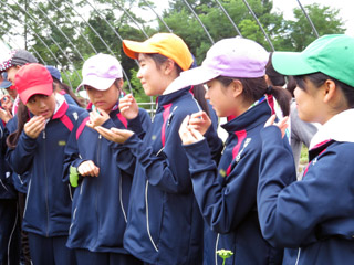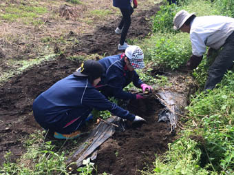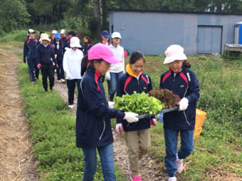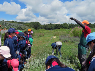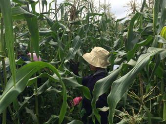 トウモロコシの収穫。1人2本お土産に持って帰ります。