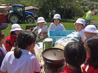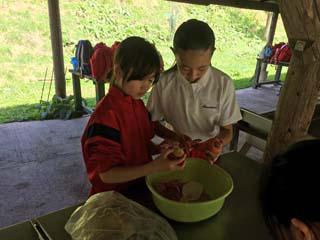 自分たちで作ったソーセージやバターを使って、ダッチオーブンでミルクポトフを作ります。
