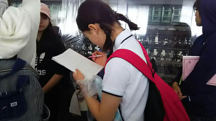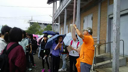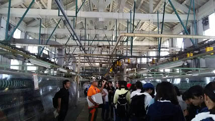ガイドさんの説明を聞きながら広い工場内を見学しています。