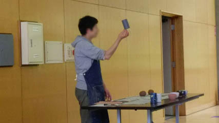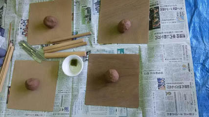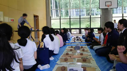 山荘に到着して、早速手皮練りの陶芸教室が始まりました。