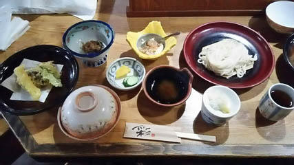 昼食は、冷まゆうどん・天ぷら・シルク豆腐などの
