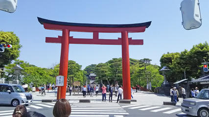 関東の駅100選の「極楽寺駅」の駅で記念撮影。昭和の日とあって、沢山の人々が鎌倉を訪れていました。