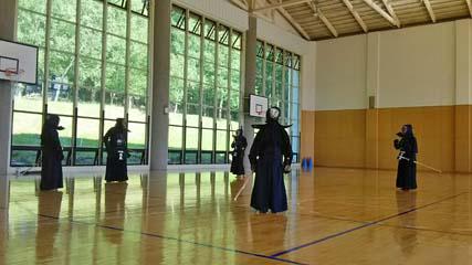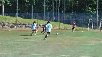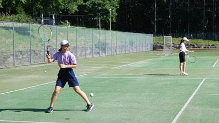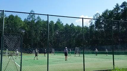 ソフトテニス部は、コートを存分に使って白球を追います。