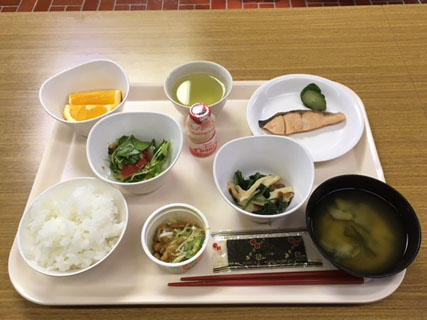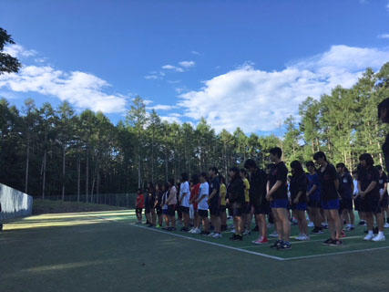 テニスコートで朝礼を行い、しっかりと朝食をいただきました。