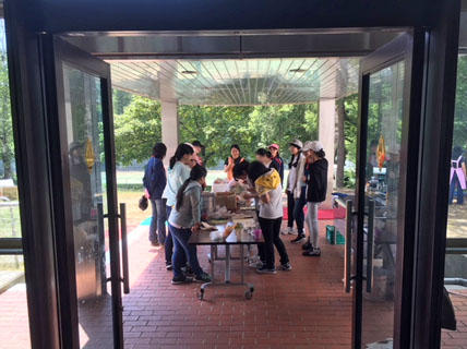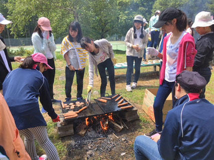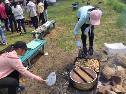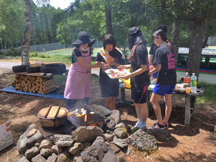 今日の昼食は、演劇部と民族舞踊部(フラダンス)がバーベキューをします。