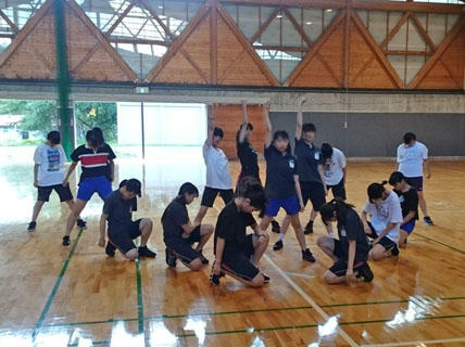 ダンス部の3日目は、合同練習です。立ち位置を確認をしてから、振りを覚えます。