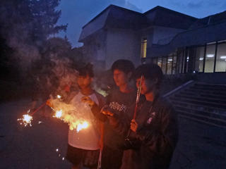 夕食後は、昨日突然の雨で順延になった花火です。