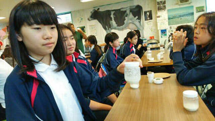 午後は、長門牧場にてバター作り体験です。