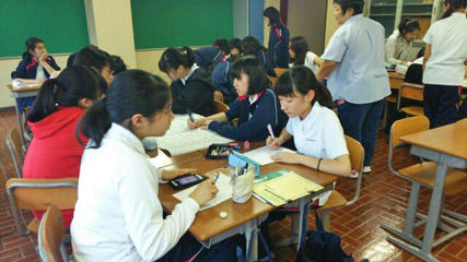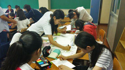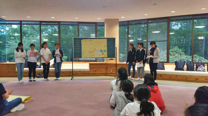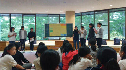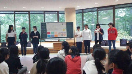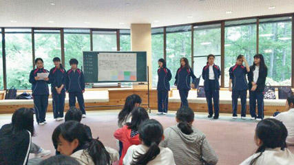 山荘に戻るとさっそく教室で、発表に向けて準備をします。