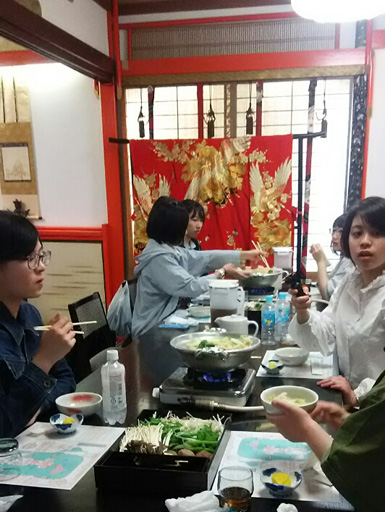 神泉苑 「平八」のおうどんは一人2本、京都での最後のお食事です。暑かったので心配しましたが、お部屋を涼しく快適に準備していただきました。生徒が「美味しい」と言って喜んで口に運ぶ様子に、お店の方もとても喜んでくださいました。