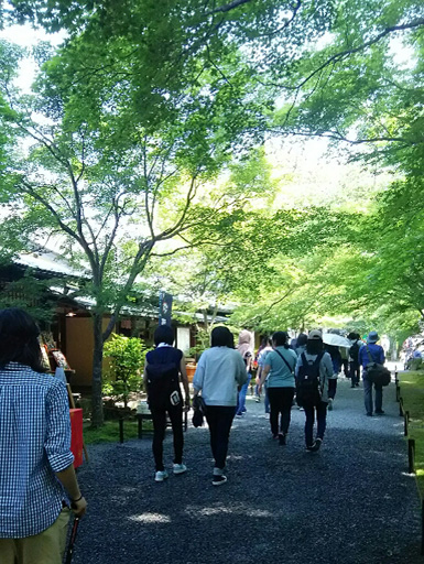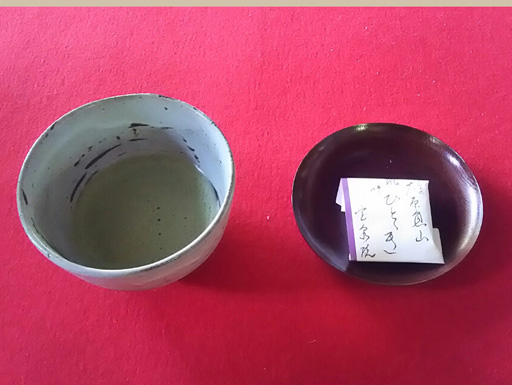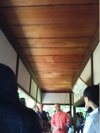 宝泉院でお抹茶とお菓子をいただき、血染めの天井についてお話を伺いました。