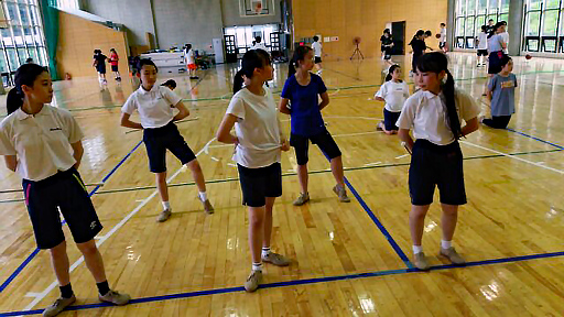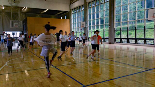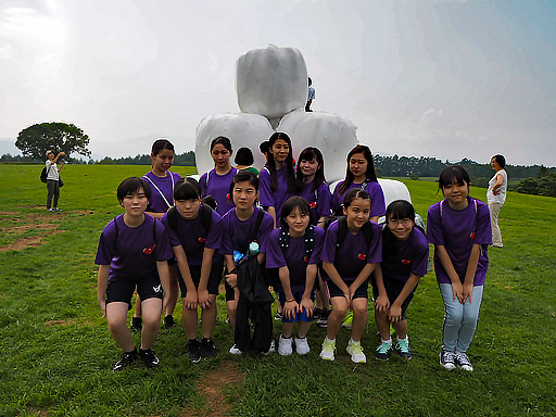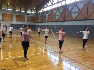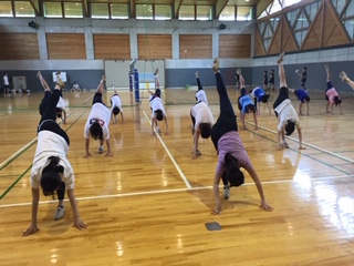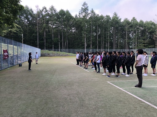 朝の気温は、20度でした。 各クラブ、朝の活動をしてから、テニスコートで朝礼をしました。