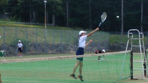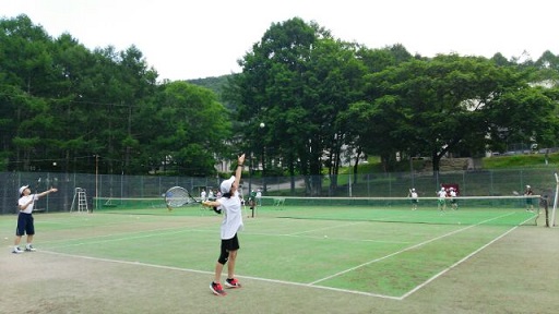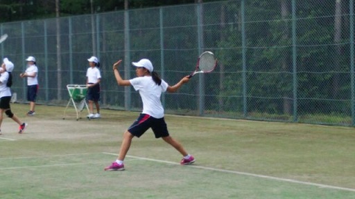 テニス部は中1はサーブ練習です 中2以上はコーチの指導で前衛後衛練習です
