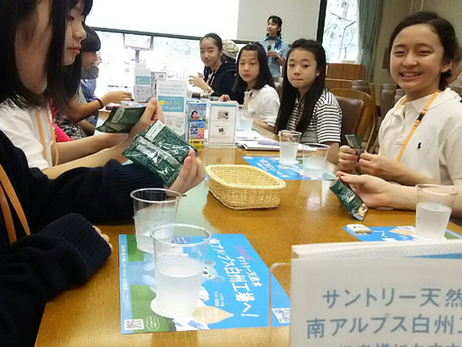 白州天然水をはじめ、ヨーグリーナ、スパークリング、朝とれオレンジの試飲をしました。