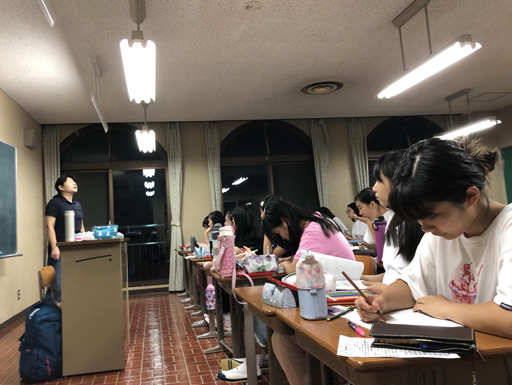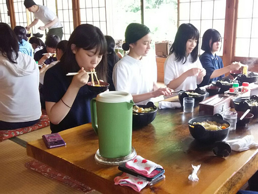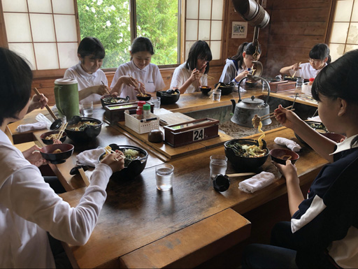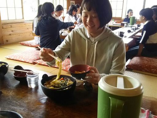 夕食の前に、お世話になる管理人の方にご挨拶、入寮式をしました。その後、美味しく夕食をいただきました。