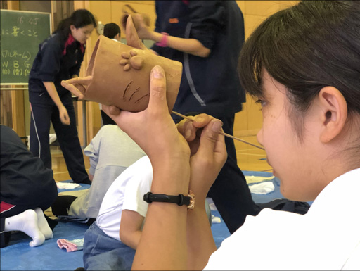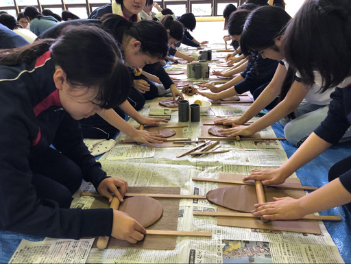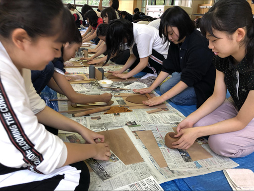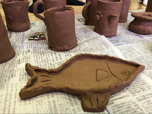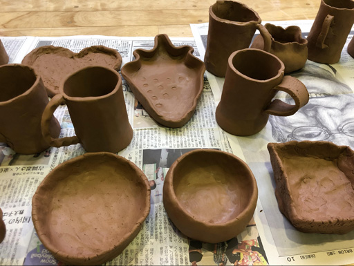 午後は、山荘で焼き物体験をしました。オリジナルのお皿やコップなど、色々な作品ができました。焼き上がりが楽しみです。