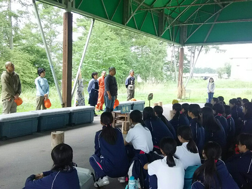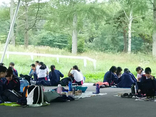 今朝の気温は、18度でした。フィールドワークに備え、朝食をしっかりいただき、山荘の方々にご挨拶をしました。
