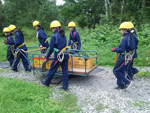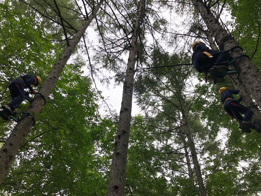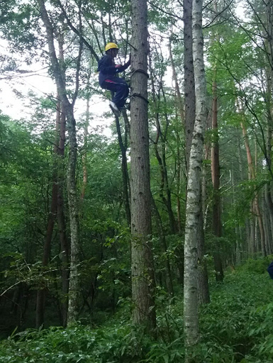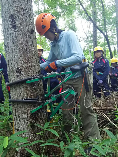 林業のworkshopが始まりました。木登り補助器「のぼっ太郎」を運んで、いざ森の中へ。
