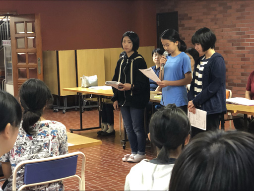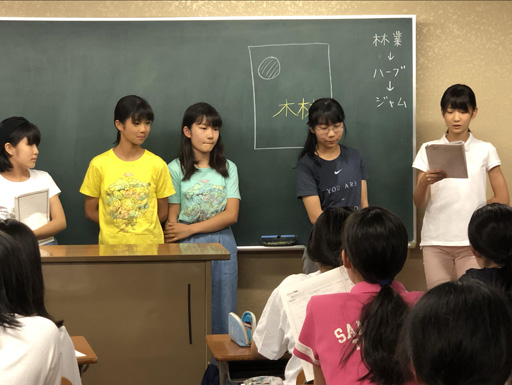夜礼では、八ヶ岳中央農業実践大学校での体験プログラム、ハーブショップ、ジャムショップ、林業ショップ、それぞれで体験し、学んだことを発表しました。