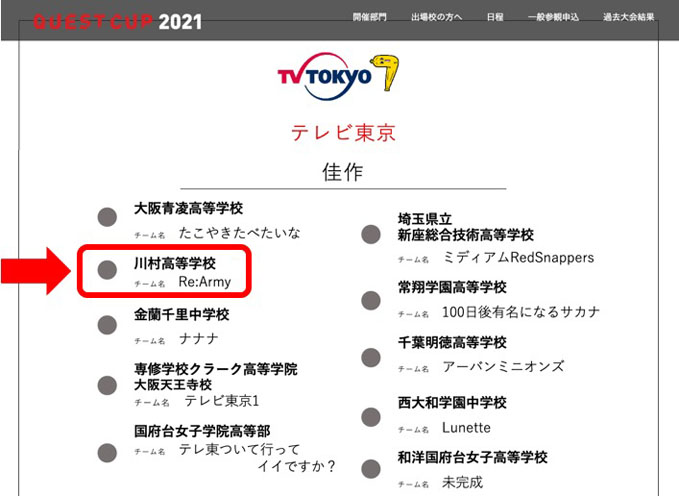 - 佳作:チーム名「Re:Army」(インターン企業:テレビ東京)